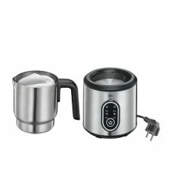 Mit dem Milchaufschäumer aerolatte® von cilio setzen Sie Ihrem Lieblingsgetränk die Schaumkrone auf. In Sekundenschnelle zaubern Sie aus erhitzter Milch ein luftiges Topping wie im Eiscafé: für Cappuccino, Latte macchiato oder heiße Schokolade. Der Aufschäumer funktioniert mit frischer Milch verschiedener Fettstufen ebenso wie mit H- oder Sojamilch. Sie können mit dem Milchaufschäumer auch erfrischende Milchshakes und Frappés aus kalter Milch zubereiten oder ihn als Helfer an der Bar nutzen. So einfach wie die Bedienung ist die Reinigung des Gerätes: Stab und Spirale in warmes Wasser tauchen, Motor kurz laufen lassen, abtrocknen und anschließend den Schaumschläger modellabhängig in der mitgelieferten Aufbewahrungsdose oder im Ständer parken.