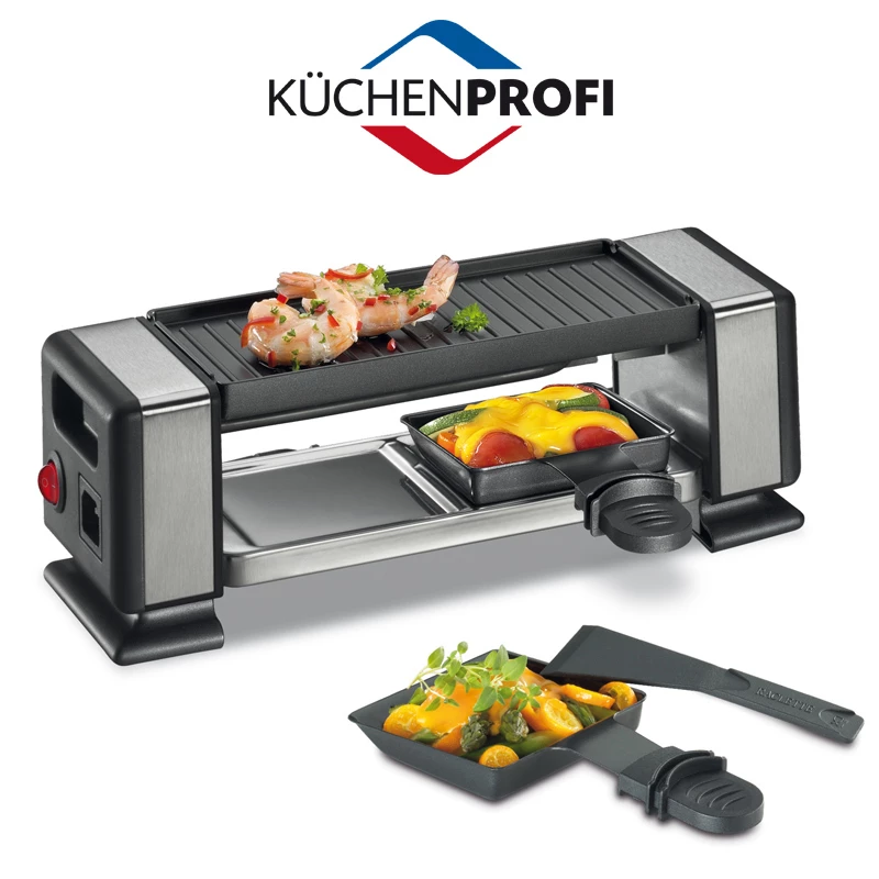 Geburtstagsfeier in kleiner Runde, Auftakt eines Spieleabends oder einfach, weil es lecker schmeckt. Gründe für einen Raclette-Abend mit der Familie oder Freunden gibt es viele. Begeistern Sie Ihre Gäste mit Geflügel, Steak oder Schnitzel. Wenn Sie das Fleisch vorher marinieren, wird es besonders zart. Und Spiegeleier oder hauchdünne Crêpes gelingen so einfach wie in der Pfanne. Alle Raclette-Geräte sind aus robustem Edelstahl sorgfältig verarbeitet und leicht zu reinigen. Die Pfännchen haben hitzebeständige Griffe, die Racletteschaber sind im Lieferumfang enthalten.