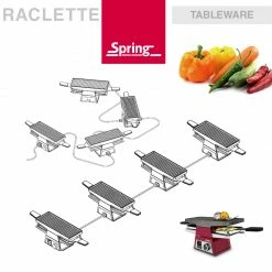 Geselligkeit hat einen neuen Namen: Raclette-6. Genießen Sie mit Freunden, Familie und Kindern. Ob knusprige Pizza wie beim Italiener, vergnügliches Raclettes oder gegrillte Fisch-, Fleisch- oder Gemüsespezialitäten auf der antihaftbeschichteten Grillplatte. Alles ist möglich – Die Party liebt Spring.